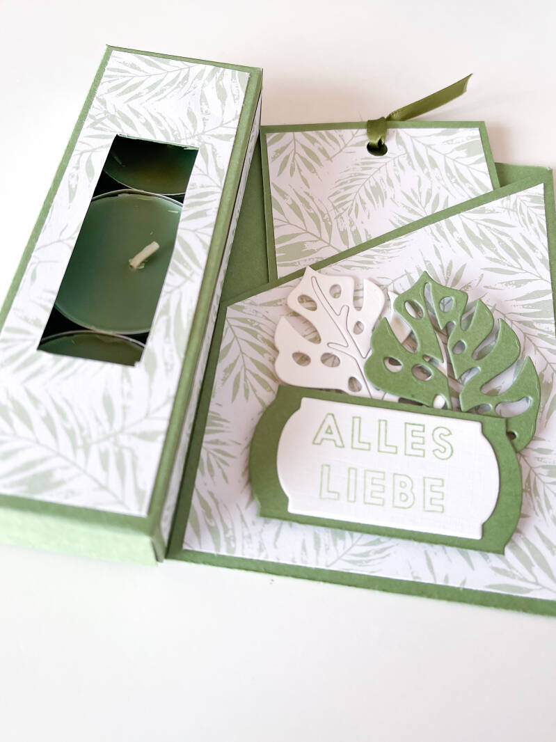 Nun aber zur Anleitung für die Karte mit Fach für drei Teelichter.